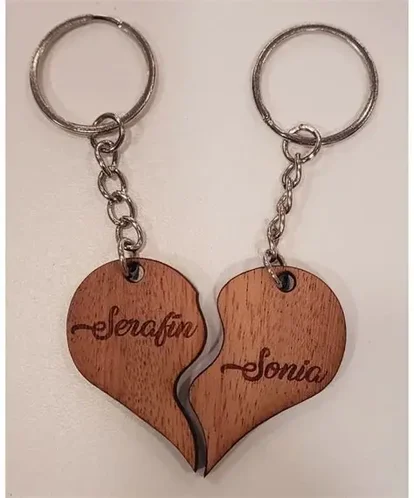 llabero de mdera en forma de corazon con nombre